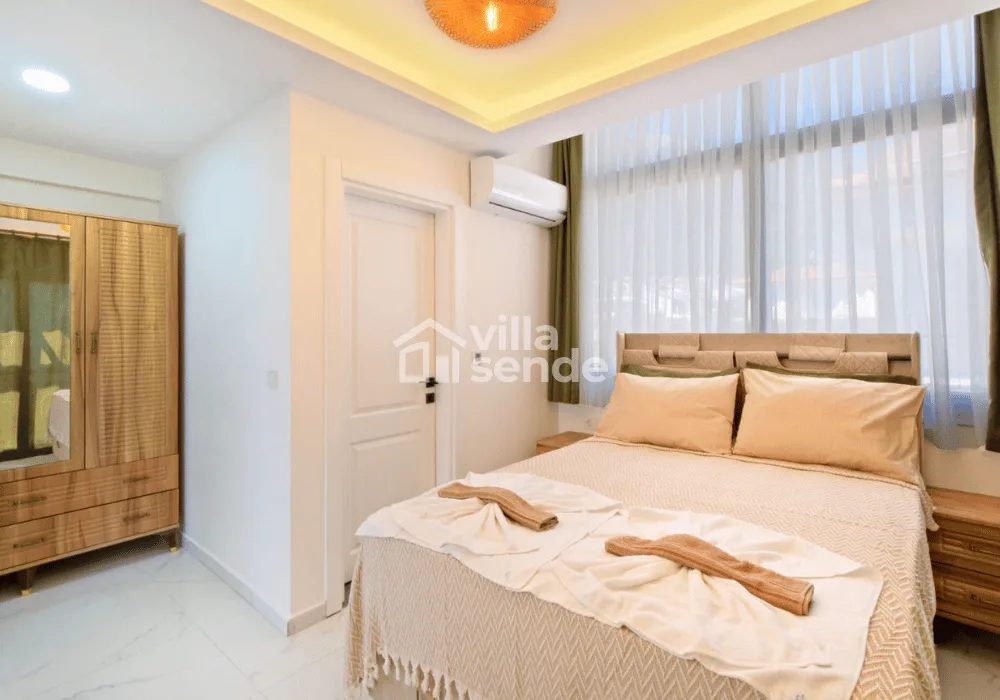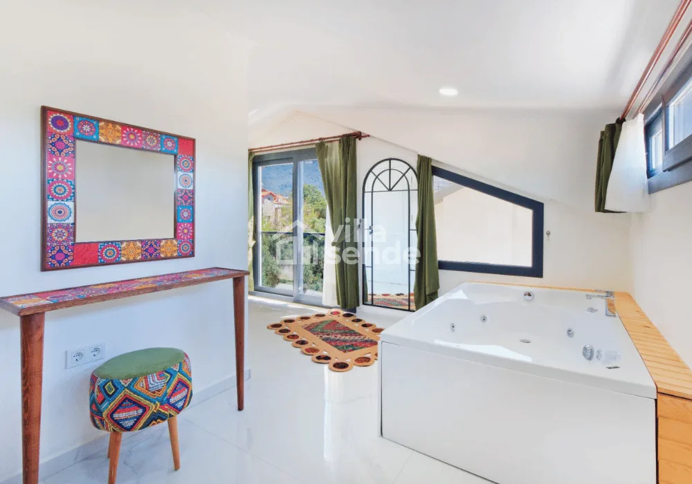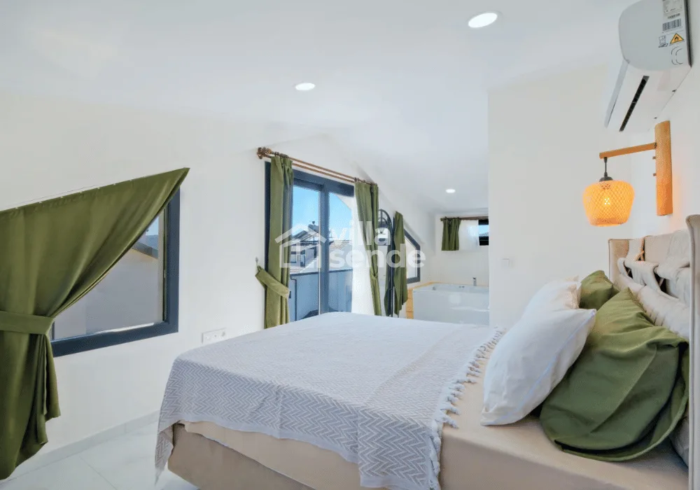Toplam 3 yatak odası ve 6 kişilik konaklama kapasitesi ile özellikle kalabalık aileler ve arkadaş grupları için ideal bir seçenektir. Villanın özel jakuzisi, tatilinize ayrıcalık katarken günün yorgunluğunu keyifle geride bırakmanızı sağlar.